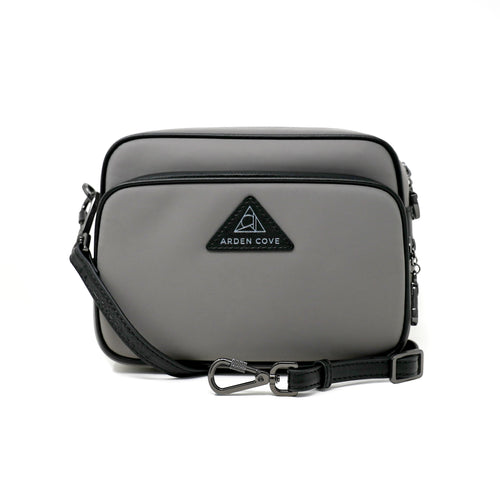 Anti-theft Water-resistant Travel Crossbody - Crissy Full Crossbody in Grey Gunmetal with slash-resistant wide faux leather & locking clasps straps - front view - Arden Cove