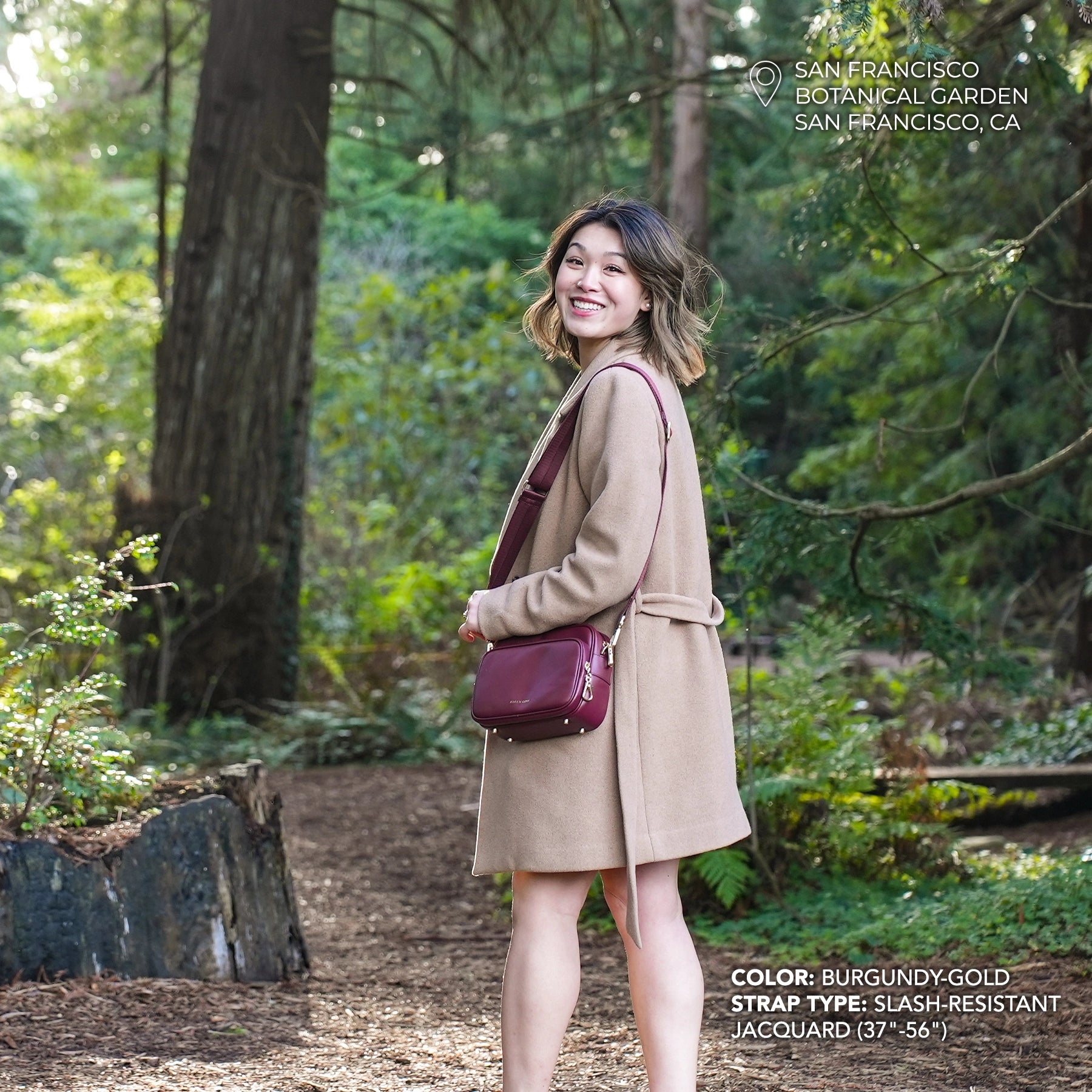 Your Choice of Secure Strap:  Customize your Verona with a strap that matches your style—choose from classy faux leather, an elegant chain, or comfy jacquard. Every option is slash-resistant and features our signature locking clasps to secure it to your bag or a chair.