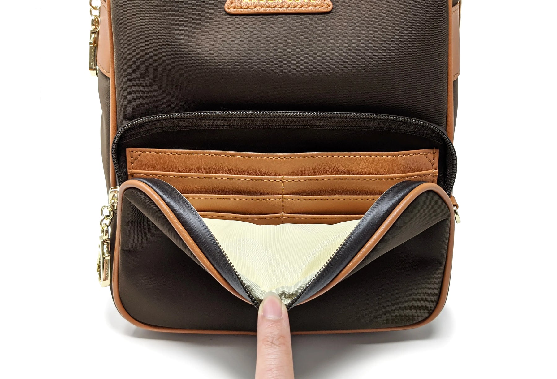 Carmel Convertible Backpack Slash-resistant Jacquard Strap locking Brown Gold side View