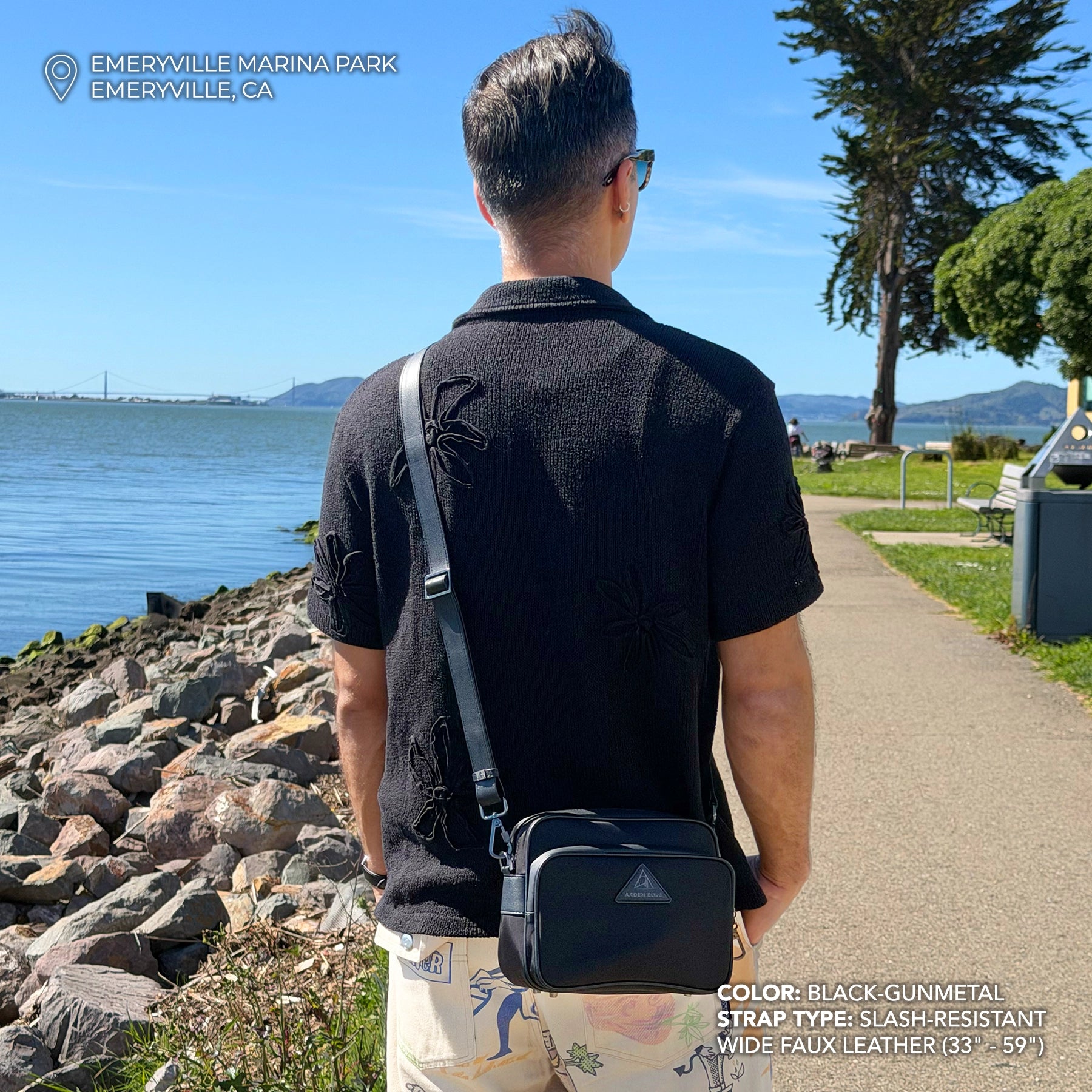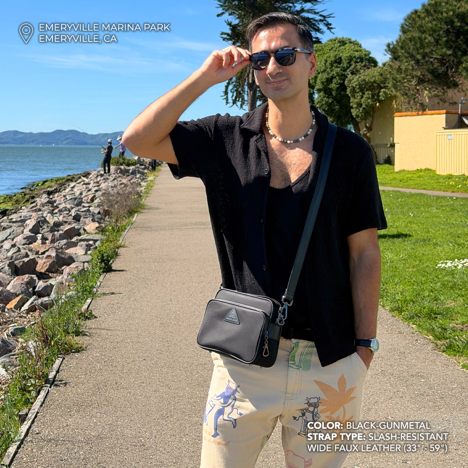 Anti-theft Water-resistant Travel Crossbody - Crissy Full Crossbody in Black Gunmetal with slash-resistant locking clasps straps - front view - Arden Cove