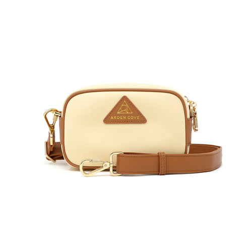 Anti-theft Water-resistant Travel Crossbody - Crissy Mini Crossbody in Cream Gold with slash-resistant faux leather & locking clasps straps - front view - Arden Cove