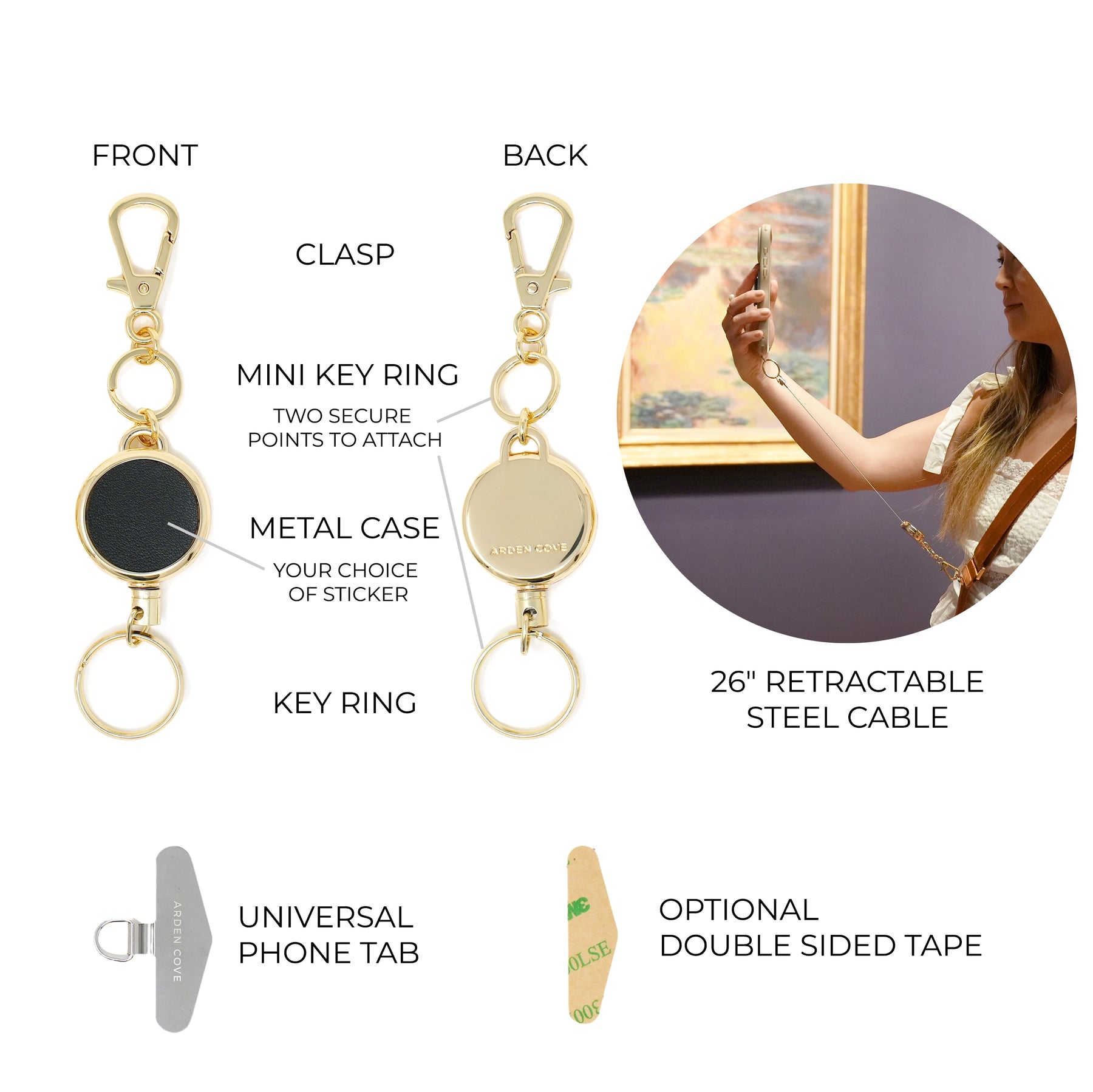 Each tether comes with a sturdy lobster clasp and two keyrings, allowing you to attach it to D-rings (inside or outside your purse), belt loops, or bag straps. It also includes a detachable universal metal phone tab to connect your device in seconds. Video guide on how to install the phone tether to your phone