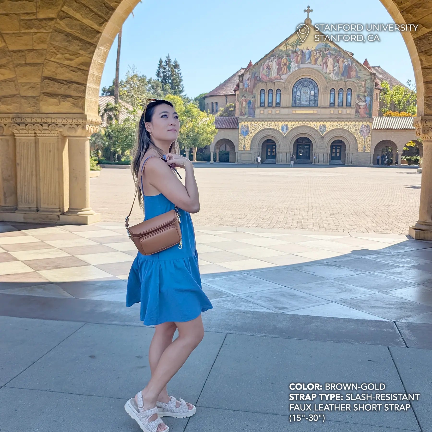 Elevate your travel essentials with our Bum Bag. Its anti-theft water resistant design includes slash-resistant lining, hidden pocket, and RFID blocking built-in wallet. The zipper clasps and straps add extra security while its convertible design allows for versatility - wear it as a belt bag, fanny pack, chest bag, or crossbody.
